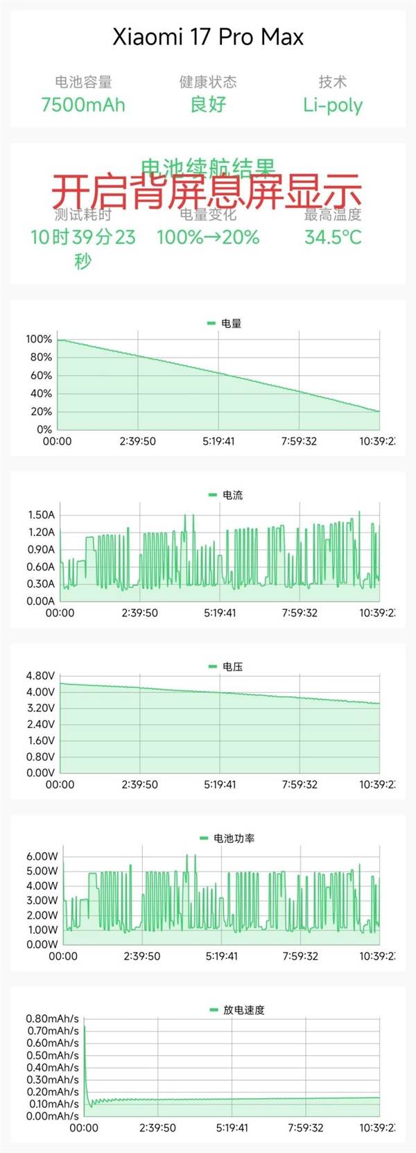 可以看到,背屏亮屏与否对续航几乎无影响,差距的11分钟完全可以理解为误差。可以放心使用。根据最高的续航时间计算,理论续航时间为13小时32分钟。相比上一代的续航时间提升了17%。再也没有续航焦虑了。