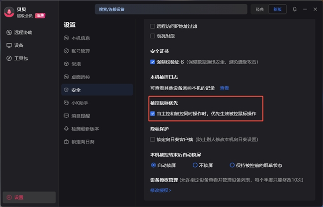 在我们接受远程协助的过程中,始终在操作上处于主导地位,我们可以禁止控制端鼠标操作、文件传输,如果主被控双方同时在操作鼠标,鼠标的控制权优先属于被协助一方,我们可以及时阻止主控端对您实施安全敏感的操作。